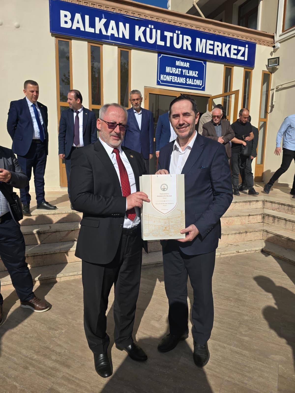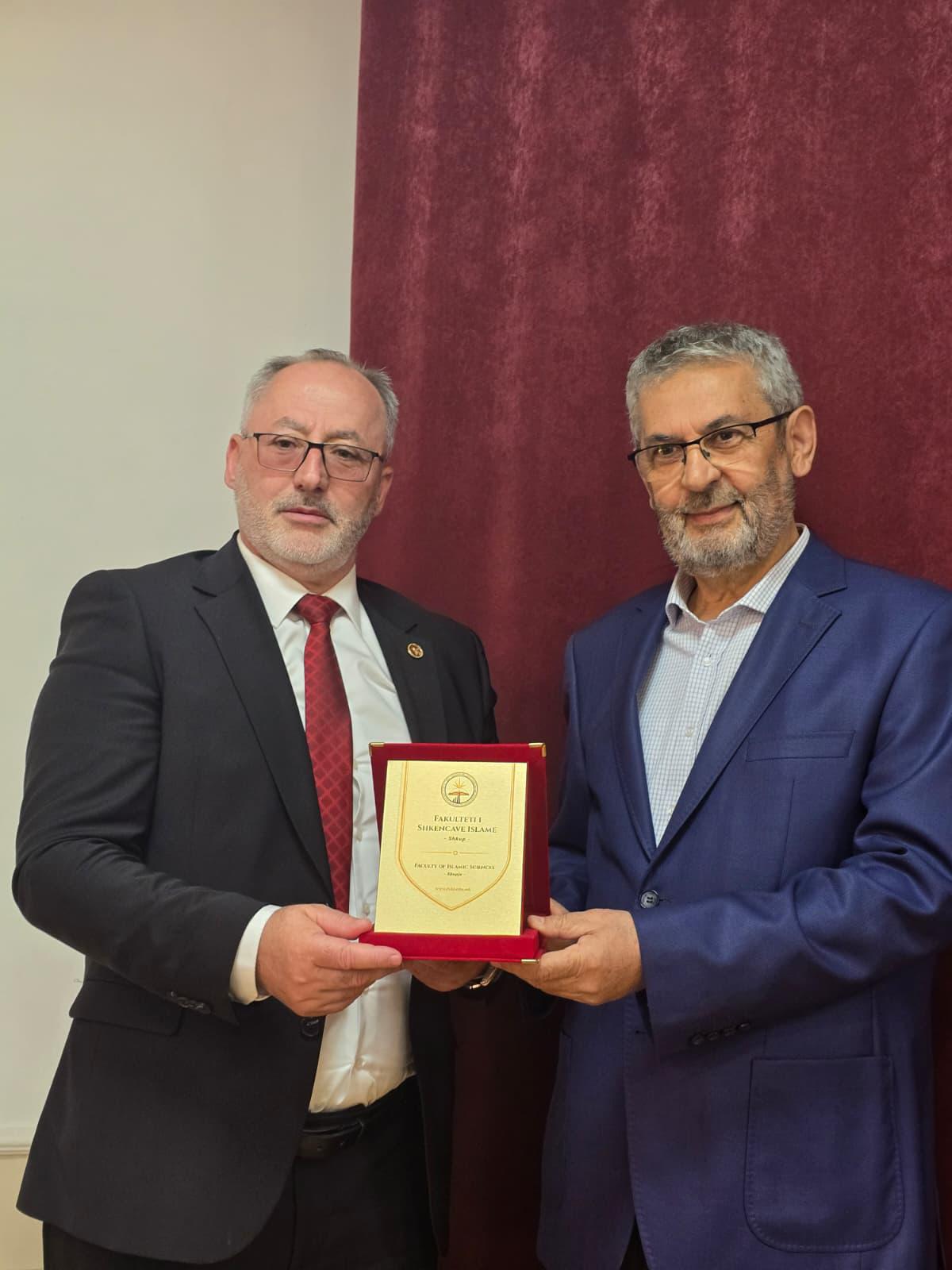 Hasan Ef. Gümüş ise Arnavut halkı ile olan özel bağlarına dikkat çekerek, İslami Bilimler Fakültesi ile iş birliğine her türlü desteği vermeye hazır olduklarını ifade etti ve kurumlarının kapılarının her zaman açık olduğunu belirtti. Sembolik olarak ise “Kalplerimiz aynı ritimde atıyor” ifadelerini kullandı.